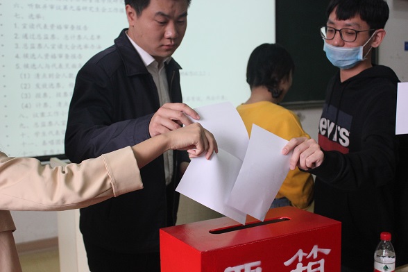 随后进入大会的选举阶段。先是由大会筹备工作组资格审查小组宣读代表资格审核报告、第十届研究生会主席团候选人资格审查报告,并通过了大会总监票人和计票人的名单,由大会监票人宣读大会选举办法。然后是第十届研究生会主席团候选人做竞选演讲,展示了他们愿为广大研究生服务的意愿和决心。在经过与会代表公平、民主地不记名投票环节后王帅、王科、毕斯鹏3人当选公司第十届研究生会主席团成员。