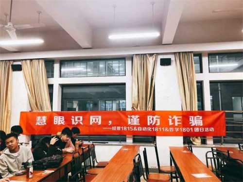 为了提高员工的防骗识骗能力和安全意识,使员工认识到网络诈骗的严重性和危害性,3月17日下午6点在新校区A座210,经管1815班、哲学1801班和自动化1811班三个班团支部联合举办主题为“慧眼识网,谨防诈骗”的团日活动。