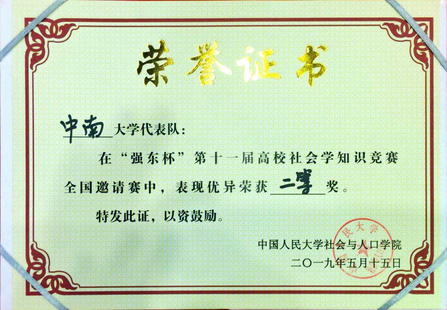 5月15日,从中国人民大学传来喜讯,公司社会学专业2016级本科生在“强东杯”第十一届高校社会学知识竞赛中取得二等奖佳绩。