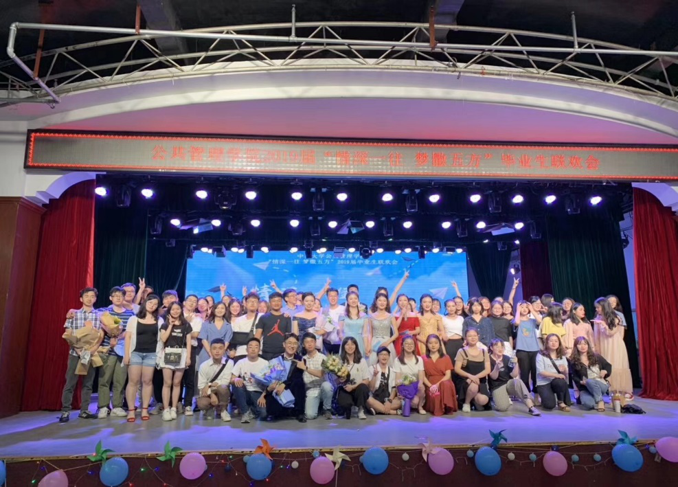 晚会伊始,主持人对老师和同学们的到来表示热烈欢迎,大幕落下,音乐响起,公司毕业晚会正式开始。同学们用精心准备的节目为即将远行的毕业生们送上了最真诚、最深厚的祝福。晚会节目连接了过去、现在和将来,分三个主题章节进行,分别是——我在回忆里等你;原来你也在这里;未来许我看向你。表演者们各展所长:舞蹈、歌曲、相声、朗诵,为观众席的老师与同学们带来了一场视听盛宴,中间更是穿插抽奖环节和游戏互动环节,增加了观演同学的参与度。老师们的集体朗诵和公管新青年制作的精彩视频更是将晚会的气氛推向高潮。最后,全体2019届毕业生们唱响《再见》,晚会在老师们的祝福与期冀,毕业生们的留恋与不舍中圆满结束,现场观众也被离别氛围深深地感染。