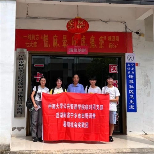 立秋已至暑气未消。似火的骄阳炙烤着宁乡正午的街道却更加点燃了中南公管学子参与三下乡社会实践的热情。8月11日院临时团支部赴湖南省宁乡市田野调查暑期社会实践团来到宁乡市灰汤镇对当地医疗资源利用情况展开为期五天的走访调研以期切实反映乡镇民众健康诉求正确理解我国现行医疗政策为推动新医改视角下我省乡镇医疗资源分配的进一步完善贡献青春力量。