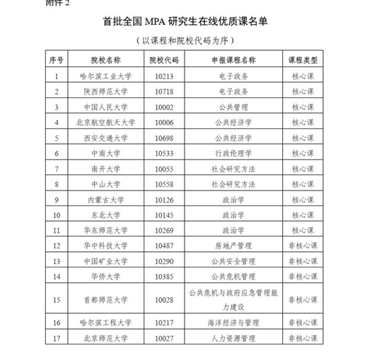 首批全国公共管理硕士专业学位研究生在线示范课程验收评审共评选“在线优质课程”17门,“行政伦理学”是伟德中国官网入口唯一入选课程。