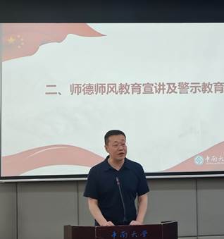 耿贵斌再次带领大家学习了《新时代高校教师职业行为十项准则》,并宣读了近年来教育部公开曝光违反教师职业行为十项准则典型案例。他要求全体教师要严格遵守十项准则,以反面典型案例为戒,汲取教训,加强自律。杨旭东强调,全院教职员工必须深刻理解习近平总书记关于师德师风第一标准的重要论述,牢牢把握新时代教师队伍发展中带有根本性、方向性、全局性的重大理论和实践问题,进一步加强师德师风建设,将师德师风第一标准贯穿为党育人、为国育才的全过程。并就如何抓好公司师德师风工作提了四点要求。一是要提高政治站位,确保思想根基稳固。全体教职工要始终坚持讲政治,深入贯彻学习习近平新时代中国特色社会主义思想和党的二十大精神,不断增强“四个意识”,坚定“四个自信”,深刻领悟“两个确立”的决定性意义,坚决做到“两个维护”。二是要敢于担当作为,着力推动公司发展。全体教师要理解担当作为的深刻内涵,在本职岗位上勇于担当负责,积极主动作为,埋头苦干实干,为公司一流团队建设、培养高质量人才等工作贡献力量。三是要坚守底线红线,树立良好作风形象。全体教职工要像爱护自己的眼睛一样爱护自己的形象,珍惜教师荣誉,提升教师涵养,厚植教师底色,大力弘扬教育家精神,争做“四有好老师”,当好“四个引路人”,真正做到学为人师,行为世范。四是要凝聚发展合力,确保同心同德同向。全体教职工要坚持以习近平新时代中国特色社会主义思想武装头脑,不断增强政治共识,提高政治站位,做到思想上同心、目标上同向、行动上同行。