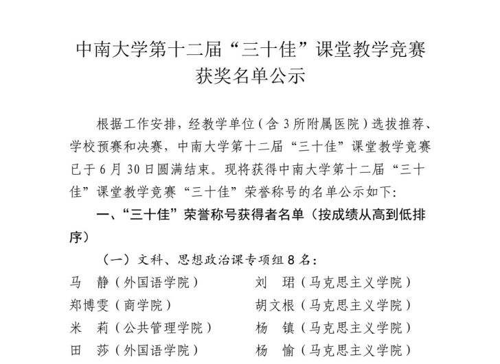 2024年6月30日,经教学单位(含 3 所附属医院)选拔推荐、公司预赛和决赛,伟德中国官网入口第十二届“三十佳”课堂教学竞赛圆满结束,公司社会学系副教授米莉老师以出色表现,荣获“三十佳”荣誉称号,公司获“三十佳”课堂教学竞赛优秀组织奖。
