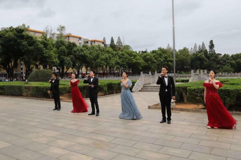 首先,由主持人宣布升旗仪式正式开始,公管院员工代表与各院师生一起为伟大祖国深情献唱歌曲《歌唱祖国》《春风十万里》《共筑中国梦》,用自己的歌声表达对祖国崇高的敬意,诠释了自己对祖国的一片赤忱之心。