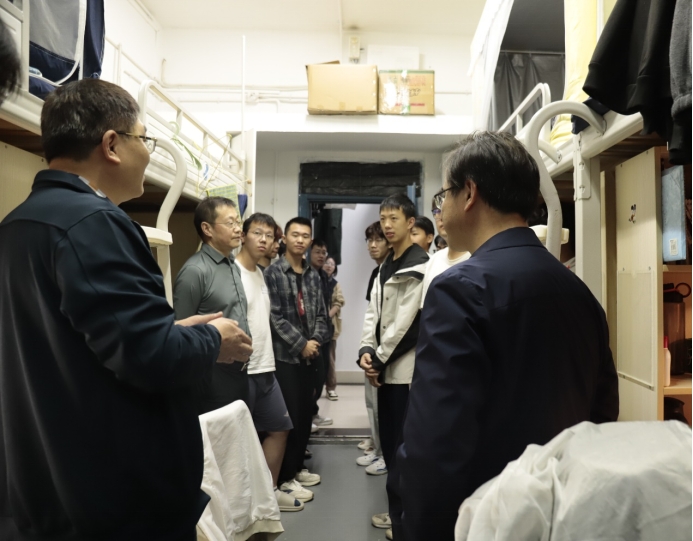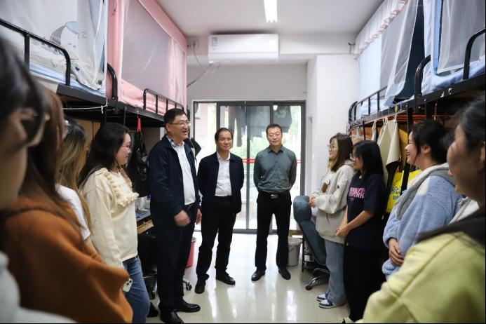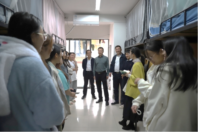11月2日下午4时,公司党委书记杨旭东、经理许源源、公司党委副书记耿贵斌以及23级本科生辅导员梁慧一行人深入铁道校区新一舍和铁二舍走访公司23级本科生,了解员工们寝室卫生环境、日常学习生活适应情况,以及相关需求。