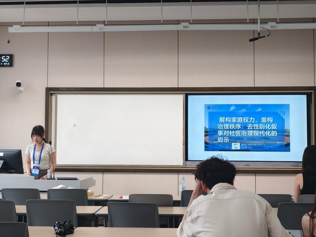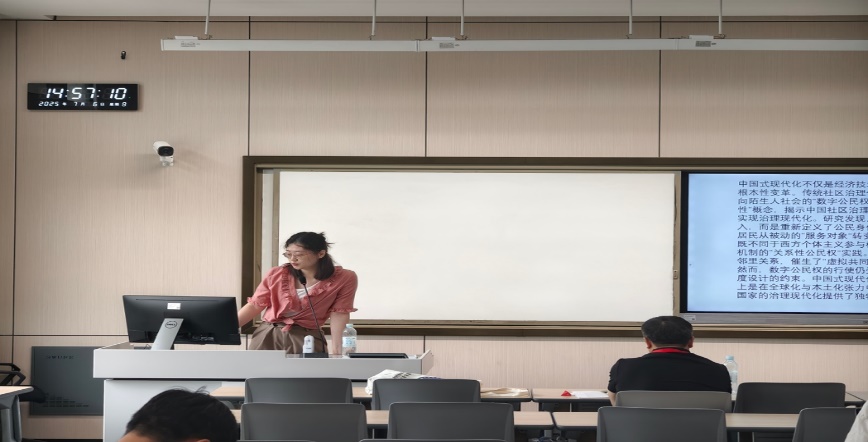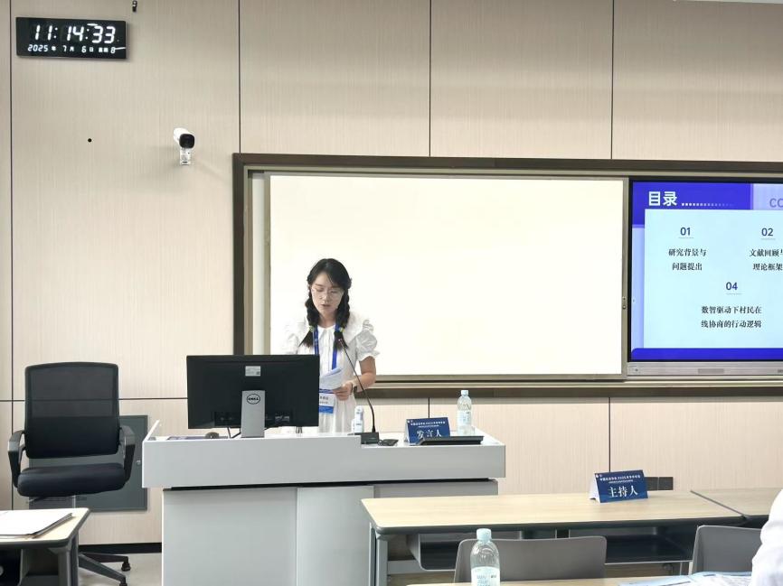 南京大学社会公司博士研究生辛家茹的发言题目是《数字时代乡村软治理:村民在线协商的逻辑与实践机制——基于W村洲尚外婆的个案研究》。辛家茹以W村洲尚外婆议事协商实践为例,探讨数字平台在村民协商中的作用,通过“主体-工具-环境”三维框架重构权力结构,形成“价值引领、技术赋能、多中心协商”的基本秩序,为乡村软治理提供理论与实践启示。