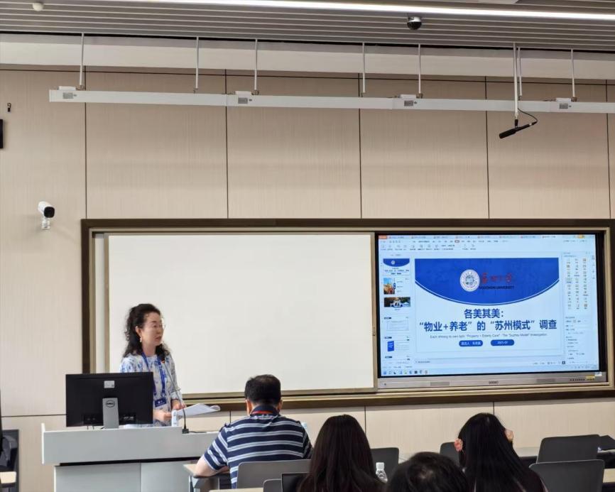 苏州大学社会公司本科生朱奕嘉的发言题目是《各美其美:“物业+养老”的“苏州模式”调查》,她基于调研经验总结了“物业+养老”的“苏州模式”取得的成就、现存困境以及后续的提升建议,为“苏州模式”的健康发展提供参考。