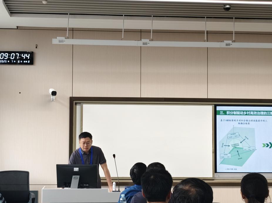 西华大学冉连副教授的发言题目是《“小积分”撬动“大治理”:积分制驱动乡村治理效能提升的三维耦合路径》。冉连副教授基于制度分析与发展框架,对全国46个案例进行模糊集定性比较分析。其指出,“组织保障”与“信息规则”是积分制发挥效能的关键,提炼出“资源-规则行政引导型”“文化-聚合内生驱动型”“资源-共同体规则导向型”三种耦合路径,并提出破解资源限制、权责模糊等问题的靶向策略。