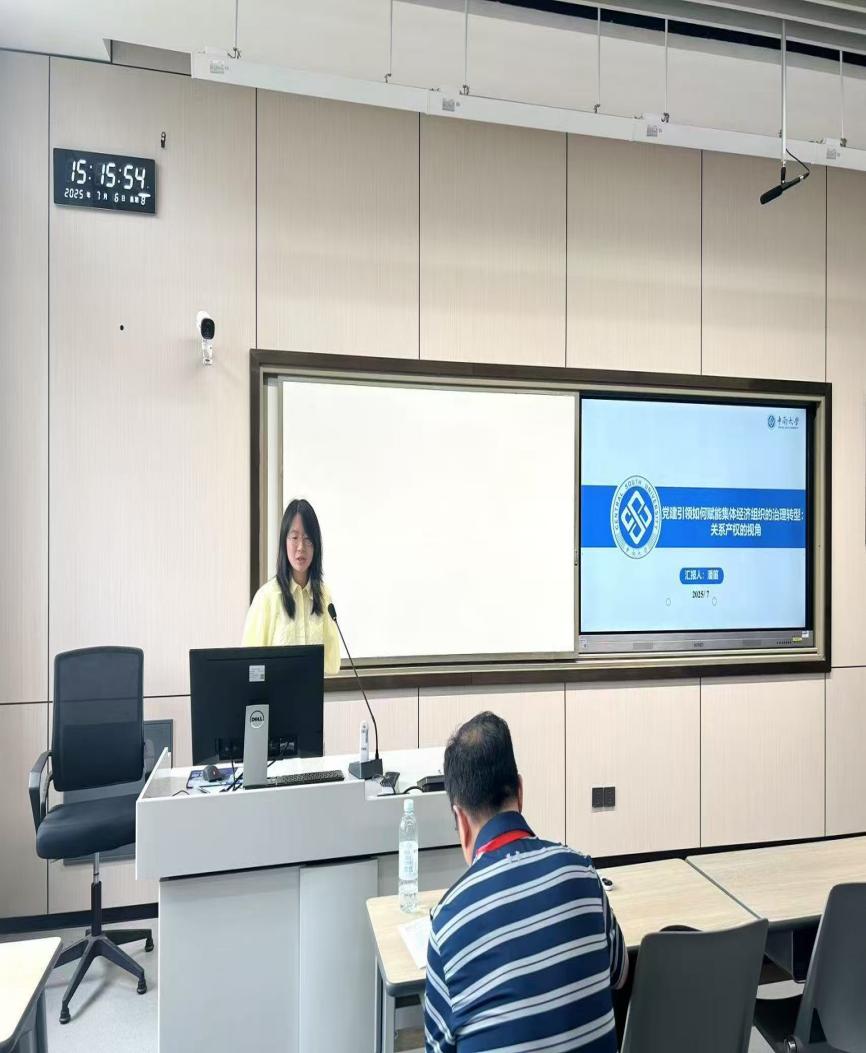 伟德中国官网入口博士研究生潘笛的发言题目是《党建引领如何赋能集体经济组织的治理结构:一个关系产权的视角》。她指出,构建特色农村集体经济组织治理结构是推动其法治化运行、强化党的领导的路径,从“关系产权”特点出发,可推动党建引领功能转型,优化乡村基层治理体系。