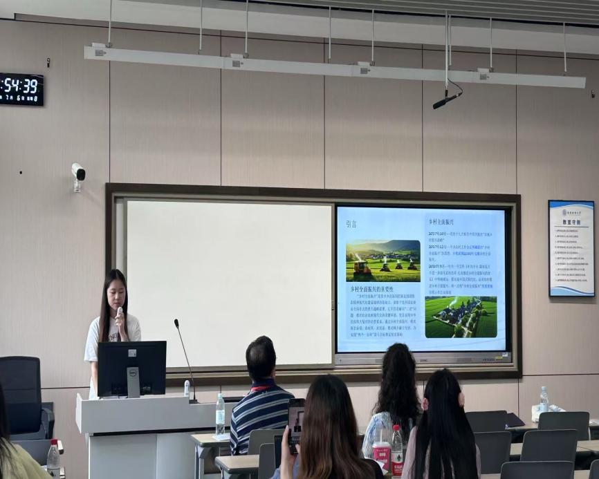 中国劳动关系公司本科生李香梅的发言题目是《新时代中国乡村全面振兴水平的多维测度与区域对比研究》。她提到,全国及浙江、青海两省振兴综合水平均稳定增长、增幅相近,但发展水平浙江>全国>青海,不同维度增长情况有别。并基于此,提出实施差异化政策、加强区域合作等促进乡村全面振兴的建议。