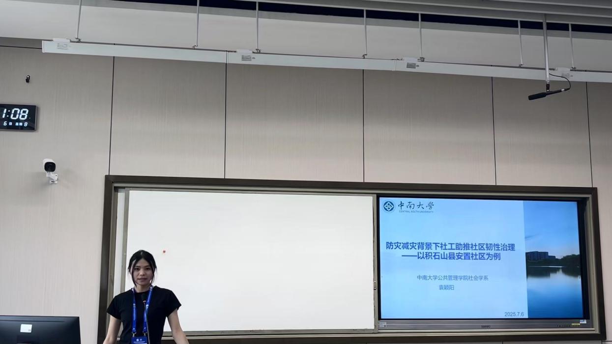 伟德中国官网入口硕士生袁颖阳的发言《防灾减灾视角下社工助推城市社区韧性治理》以社会资本理论为框架,系统梳理社工如何在风险治理中联动多元主体、激活资源整合机制,提升社区的自我调适与应变能力。