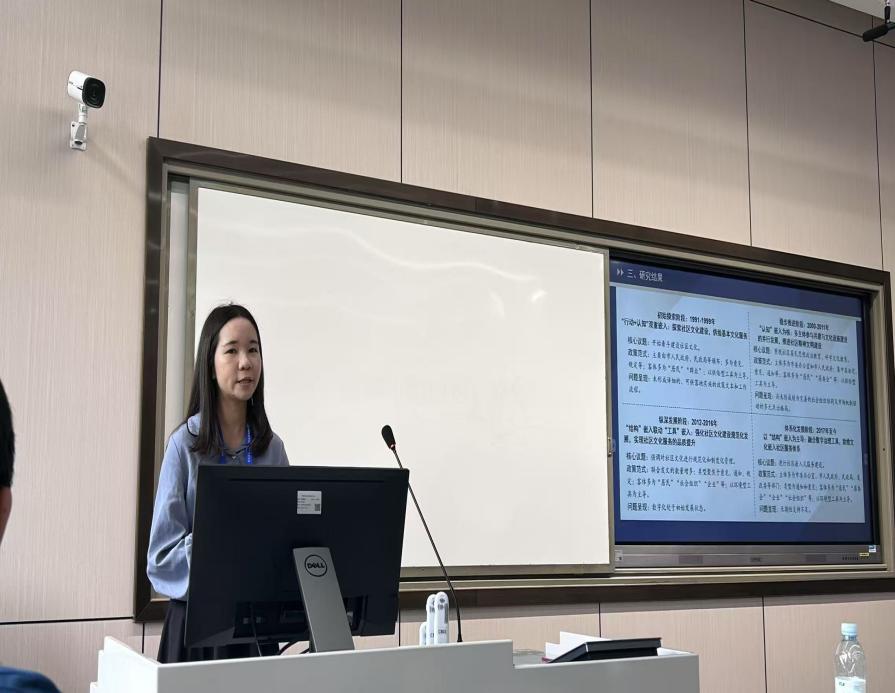 北京航空航天大学博士研究生林慧娟的发言题目是《导向社区共同体的社区文化治理政策嵌入:逻辑机理与未来展望》。林慧娟博士认为,社区文化治理应推动文化从“治理工具”转变为“生活方式”,实现治理与生活融合,而政策是提升治理效能的关键。她剖析了社区文化治理政策嵌入的全过程与阶段性逻辑,并提出通过多元协同、工具创新、空间场景营造、价值共识凝聚四条路径,构建社区共同体,为社区建设提供理论与实践指引。