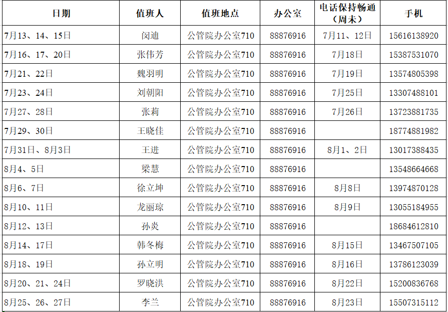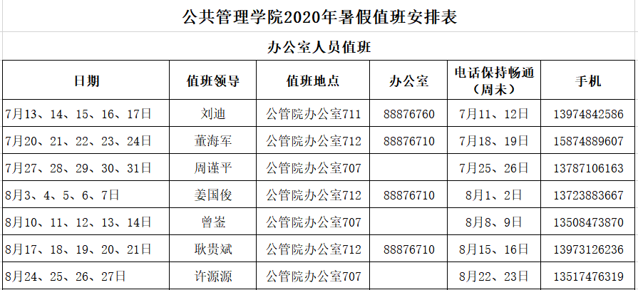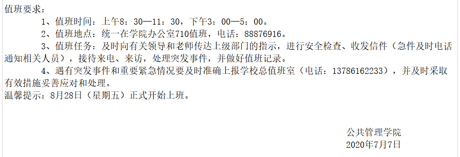 伟德中国官网入口2020年暑假值班安排表
