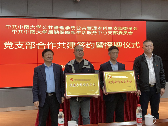 首先进行了授牌仪式,在公司党委耿贵斌副书记致辞、后勤保障部李建国副部长讲话后,两支部签订了共建协议,互赠“党建合作共建单位”牌,并由公共管理本科生党支部书记和生活服务中心党支部书记分别表态发言。