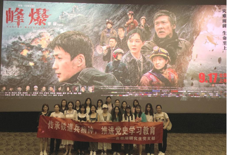 为传承铁道兵精神,推动党史学习教育入脑入心,强化党史学习教育效果,9月26日下午,高教所研究生党支部赴潇湘国际影城观看影片《峰爆》。