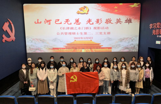 山河已无恙,光影敬英雄。为了更好的激励支部党员坚定理想信念、传承红色基因、肩负时代重任,2022年3月9日晚7点,公司公共管理硕士生第二、第三党支部,联合组织党员和积极分子开展《长津湖之水门桥》主题观影活动,致敬用生命守护万家灯火和盛世团圆的英雄。