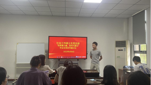 2022年6月8日下午,社会工作硕士生党支部开展了以“扬青春力量,担时代重任”为主题的毕业生党员教育培训暨专题党课和主题党日活动。公司党委副书记耿贵斌受邀讲授专题党课,本支部全体党员参加了活动,活动由支部书记李春玲老师主持。