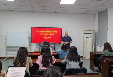最后,支部书记何雷老师开展了《学习<习近平谈治国理政(第四卷)>,做新时代合格员工党员》的专题报告,何老师从做学习中的合格党员、做科学研究中的合格党员和做未来职业中的合格党员三个方面为员工党员做出了学习指导,认为特别是作为社会科学领域的员工党员,需要仔细研读和领悟《习近平谈治国理政》全套著作中的思想,真正把党的理论与科学文化知识学习紧密结合起来,并且能够运用到学习和社会实践之中。