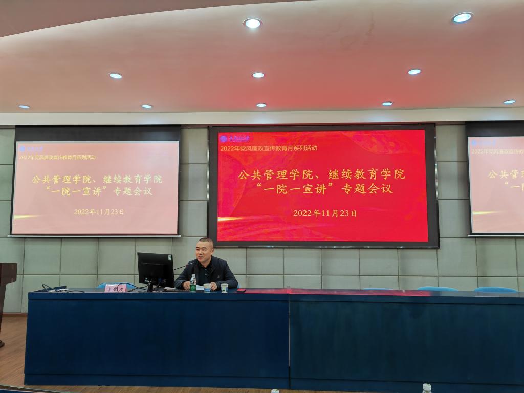 为进一步贯彻中共中央办公厅《关于加强新时代廉洁文化建设的意见》,落实公司纪委“一院一宣讲”及党风廉政宣传教育月工作安排,实现纪律教育对教职员工的全覆盖,营造风清气正的公司氛围。11月23日下午,校纪委副处级纪检员、第二纪检监察室主任卜世波在公管楼404报告厅作了题为“增强全面从严治党永远在路上的政治自觉,确保党不变质、不变色、不变味”的廉洁教育专题宣讲,伟德中国官网入口和继续教育公司党政班子成员、全体教职工党员参加了会议,会议由公司党委副书记、纪检委员耿贵斌主持。