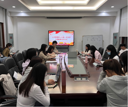 2023年5月8日晚7:00,公共管理硕士生第二党支部在院楼307室召开党员大会,组织全体党员围绕“学习贯彻习近平新时代中国特色社会主义思想主题教育”开展党课分享和学习研讨。会议由支部书记梁慧老师主持。