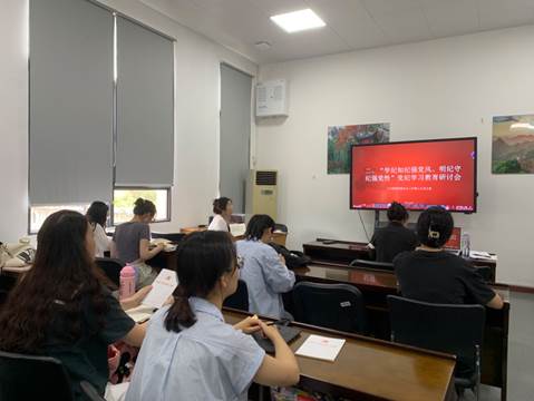 5月26日,支部召开了第二次党纪学习教育集中交流研讨会,主题为“学纪知纪强党风、明纪守纪强党性”。会议采用“支部书记以领学、支部委员以导学、支部党员以研学”的方式进行,各党员同志紧扣党的政治纪律、组织纪律、廉洁纪律、群众纪律、工作纪律和生活纪律,逐一研讨近期《中国共产党纪律处分条例》学习体会。