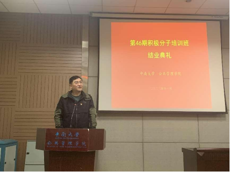 结业典礼上,优秀学员代表朱紫晗首先做了发言。她回顾了一个多月以来学员们在培训班上的收获与成长——“党的性质、宗旨与指导思想”、“党的基本路线与现阶段任务”、“党的组织与组织原则”……,在一门门课程的具体学习中对党的基本知识有了更加体系化、结构化的掌握吸收;“入党不止在程序,更在思想”、“过去的红军是在火线上入党”……,在培训班授课老师们的教诲与指引下更加坚定理想信念,入党动机和思想觉悟有了进一步的纯化提升;特别地,在培训班上系统学习消化了党的二十大会议精神,更加明确和坚定作为新时代的青年在推进中华民族伟大复兴新征程上的前进方向和努力目标。朱紫晗同学代表全体学员表达了对培训班导师、授课教师辛勤付出的真挚感谢,并表示将在接下来学习生活中,以实际行动践行青年使命,不负党和国家的期望嘱托。