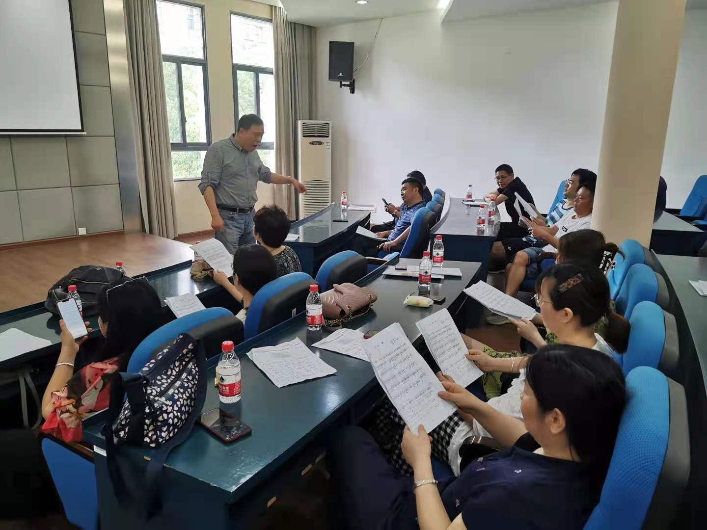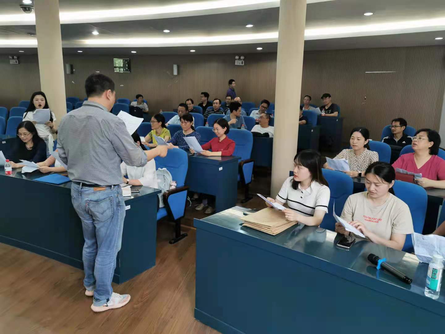 5月19日下午,在院楼404,公司教职工进行合唱活动的分声部选拔,拉开了合唱练习的序幕。在合唱指导老师王育霖及其员工的指导下,公司参加合唱的教职工,被分为男高、女高、男低、女低四个声部,并选拔了四名责任心强的教职工担任分声部组长。围绕颂歌献给党主题,公司教职员工就必唱歌曲《没有共产党 就没有新中国》、比赛歌曲《红梅赞》,进行学唱和演唱。