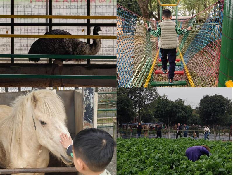 午间,队伍转至绿世界生态艺术农庄。作为国家五星级农庄,绿世界樱桂成林、蔬果飘香,教职工们体验有机蔬菜采摘、油菜花田摄影、马匹互动喂养等特色活动,并在鸵鸟生态区近距离观察陆行巨禽的独特习性,于自然野趣中感悟生态之美,收获劳动与观察的双重体验。