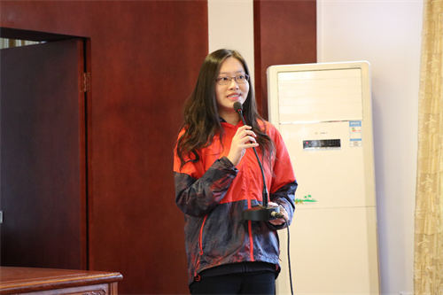 仪式第二项,香港教育大学员工代表王倩雯发言,她用交流营各个小组的组名总结过去几天的交流行程,湖湘文化中独特的饮食文化给香港教育大学的各位师生留下了深刻的印象,交流活动增进了营员间的友谊,“青年兴则国家兴,青年强则国家强”,香港教育大学的所有员工定会增强自身素质,一起为祖国的发展和进步努力奋斗。