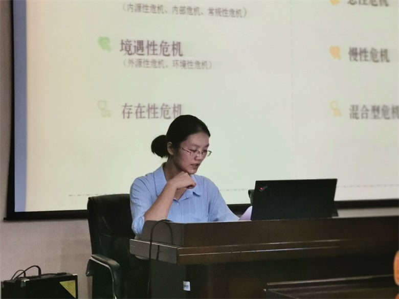 梁慧老师首先介绍了朋辈心理互助者的角色定位,帮助在座员工明白自己的职责、作用以及主要工作内容,使其对于未来的工作有初步的认知和了解。随后,梁老师仔细说明了心理危机的概念、种类和常见反应,并列举现实生活中的实例,强调心理危机发展可能带来的严重后果,展开介绍心理危机相关知识,让员工们认识到关注老员工心理健康状态、预防自杀的重要性。接着,梁慧老师讲解了如何发现与识别心理危机,并及时进行心理危机的干预,通过讲解一些常见的心理问题产生原因,让员工们对心理危机有了基本的认识。她介绍了常见的危险因素和心理异常的识别标准,教会大家从日常具体表现来评估身边有心理异常状况同学的危机情况,以便及时发现和解决问题。最后,就如何干预心理危机,梁老师给出了一些具体工作方法和建议,细化到组织活动的实例,为朋辈心理互助成员开展工作提供了参考。