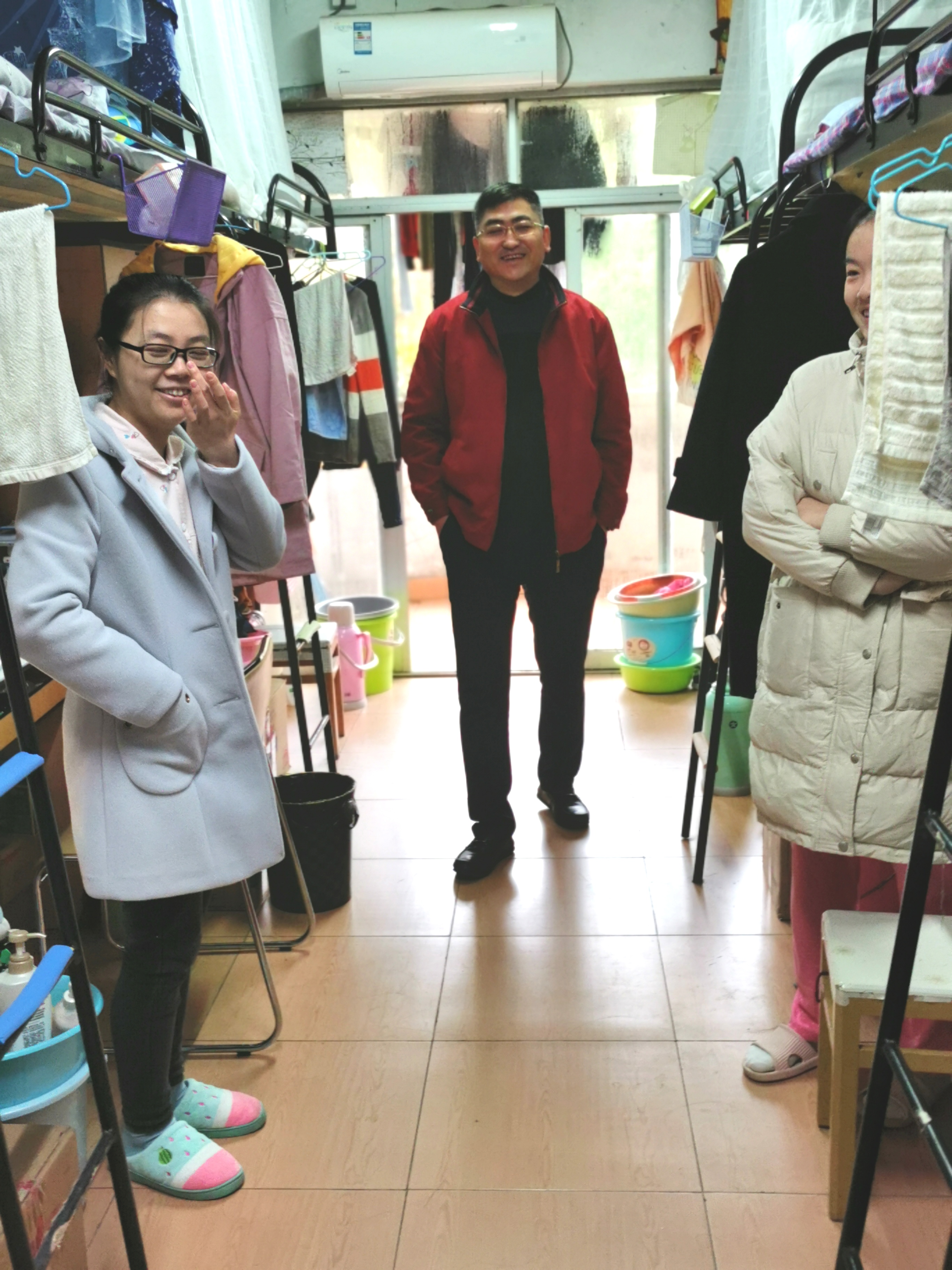 11月26日上午10:30至12:15,公司党委副书记耿贵斌老师深入校本部桃花员工公寓C栋和员工15舍,对17级本科生男生宿舍和女生宿舍进行了走访,了解员工寝室生活环境,及时发现并解决员工问题。17级本科生辅导员梁慧老师陪同。
