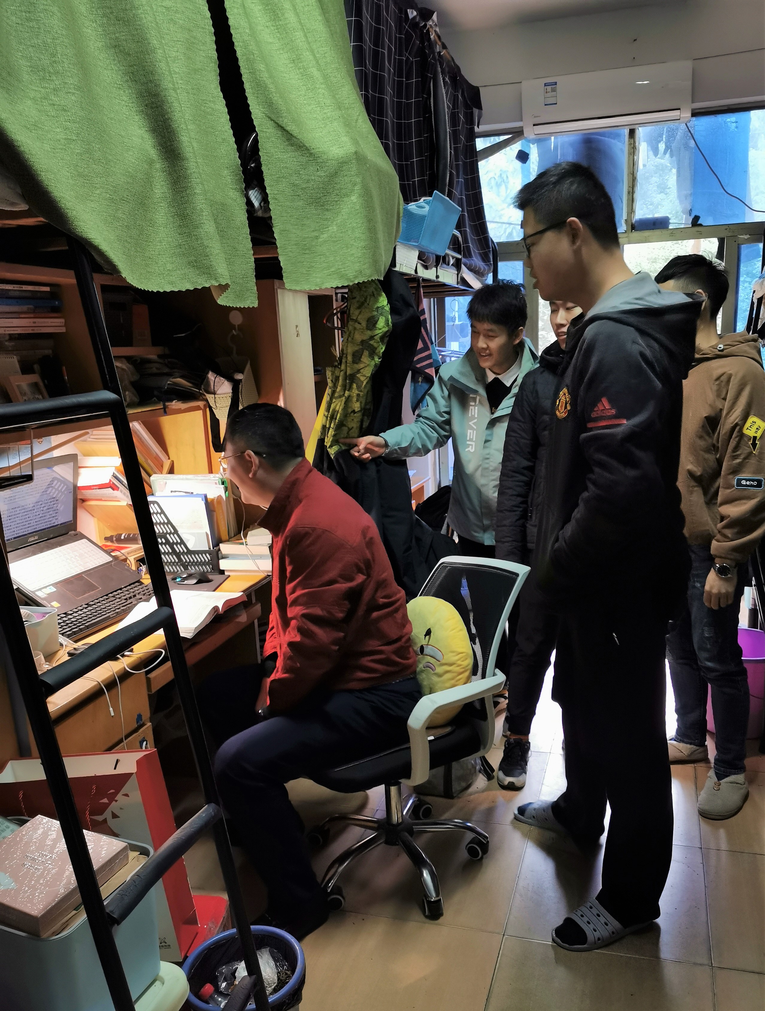 走访中,耿书记首先详细了解了员工寝室服务和后勤保障情况,叮嘱同学们注意人身和财产安全,提高安全意识。接着,他关切地询问了同学们在宿舍生活中遇到的困难和问题,并当场给予解答。为减少同学们的拘束感,耿书记向同学们分享了自己的大学住宿生活,与同学们进行了亲切的交流互动,交流氛围渐渐变得轻松起来,大家你一言我一语聊得欢快热烈。
