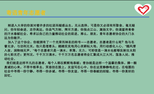 接下来,由社会学1602班吴倩、劳保1701沈泽和社会学1701班张治卓三位优秀志愿者分享其志愿服务经验。吴倩同学从个人志愿服务、防控疫情、支教、归与书院等方面的志愿服务展开经验分享,引导我们从专业兴趣和知识等方面考虑问题,鼓励我们积极参与志愿服务,主动参与和交流,推动志愿服务项目化、让志愿服务高效率完成。 沈泽同学就“星梦家园”志愿服务经验进行分享,他介绍了“星梦家园”的服务对象、志愿者扮演的角色、频率和地点等基本情况,再结合自身的服务经历向我们介绍相关的志愿服务活动、收获以及感悟。张治卓同学就“亲子共读大讲堂”志愿服务展开分享,向我们介绍了项目的基本情况、组织架构、所获荣誉奖项,随后从目的、意义、怎样开展活动、我们能带去什么等方面分享了个人体会。