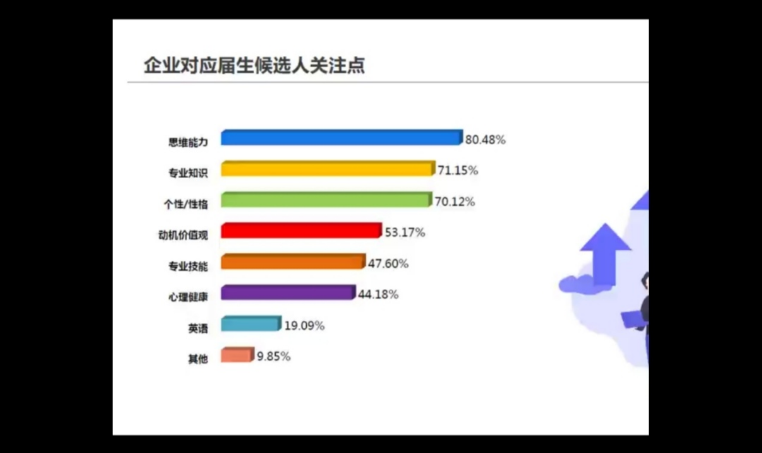 接着,在面试思维上,宫老师向同学们展示了企业对应届生候选人的关注点,强调思维能力在面试过程中的重要性。同时,他以HR和被面试者之间的短信交流为例,提出缺乏有效沟通是一件值得担忧的事,需要引起同学们的高度重视。经过宫老师的耐心讲解,同学们都认识到摆正心态,学会换位思考,做好充足面试准备的重要意义。