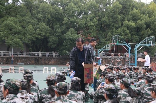 随后,三院领导和分团委、员工会成员们给新生们分发了此行带去的脉动饮料。时值九月,虽然长沙气温有所下降,但新生训练辛苦,收到饮料的新生们表示非常开心,对公司领导和学长学姐们的慰问和鼓励表示感谢。