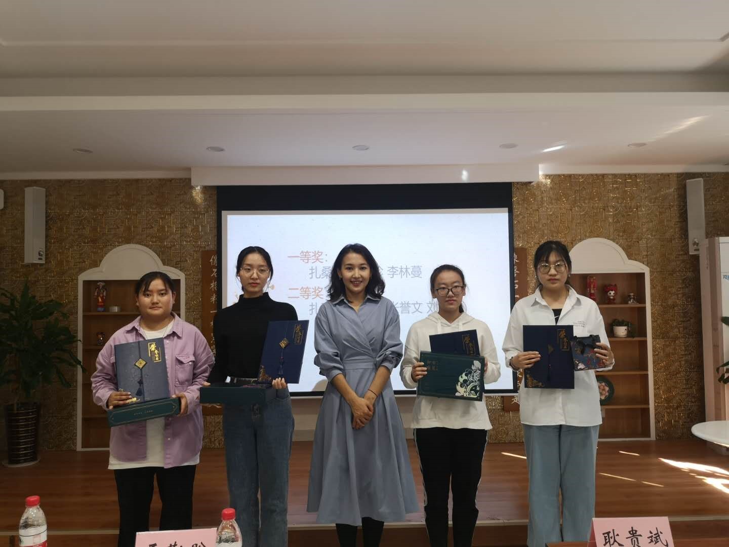 大会最后,由耿贵斌书记、吾勒盼老师、梁慧老师分别为本期“国学小课堂”的一等奖(3名)、二等奖(4名)、三等奖(6名)获奖同学,颁发荣誉证书与奖品,由“国学小课堂”项目授课成员,为全体结课员工颁发结课证书。