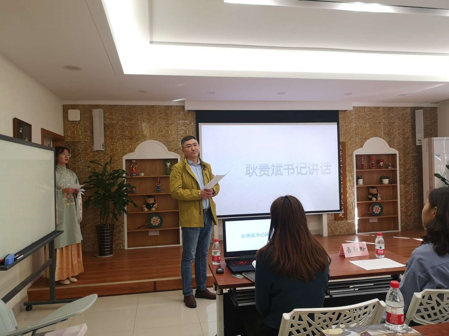 2020年11月14日下午2点,公司于新校区毓秀楼117,举办了“国学小课堂”结课表彰大会,公司党委副书记耿贵斌、学工部少数民族事务办公室老师吾勒盼、公司17级本科生辅导员梁慧出席会议,全体“国学小课堂”结课同学参会。会议由公司“国学小课堂”项目成员邓赵平同学主持。