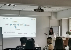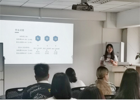 接着,公司行管1702班肖云清同学分享了自己在创新创业项目的经验。肖云清在创新实践方面有着丰富的经验,现已保研至清华大学。她从大创是什么、如何申请、如何开展、如何优质地结题四个部分向大家介绍了大创的重要性与实际操作。其中,她以自身多个实例,清晰详细地向大家阐述了如何优质地、高效地结题。在分享的尾声她还给同学们提出了一句衷心的建议:“敢于迈出第一步,不要总觉得自己没准备好,去做中学,享受过程,凡所经历皆为成长,时间会给你惊喜。”
