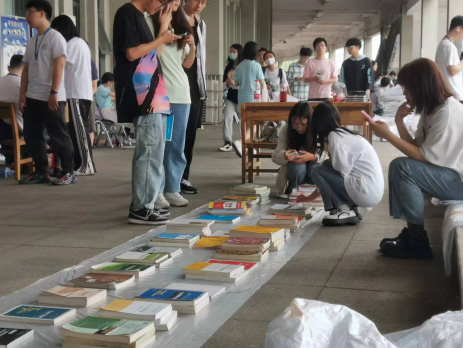 活动当天,同学们既可以凭校园卡不限数量免费领取书籍和物品,也可现场捐赠书籍,现场前来参加活动同学们络绎不绝,他们驻足挑选自己心仪的书籍。时光荏苒,大四的学长学姐即将远航,将自己的书籍留给仍在校园的学弟学妹,每一本书都是特别的,也许是留下了使用者努力奋斗的痕迹,也许是深夜曾与作者的对话思想。领到书的学弟学妹们好像也能体会到学长学姐们的经历,每个人与每本书都有特别的缘分。