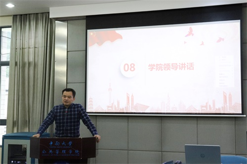 之后,公司学工办主任徐立坤发表讲话。首先,徐老师向大会的成功举办及成功获选的各位候选人表示祝贺,并希望新一届团学会团结奋进,在新一届主席团成员的领导下更好服务公司建设;其次,徐老师建议全体参会人员不断强化政治活动参与意识,进一步提升公管学子的政治素养。徐老师的寄语对公司员工的工作做出了明确要求与展望。