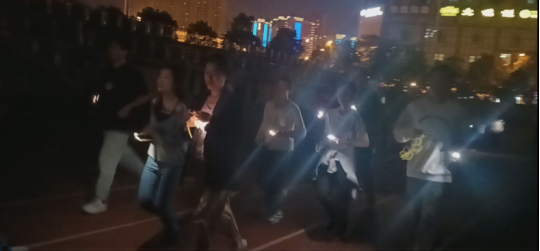 同学们积极参与荧光夜跑