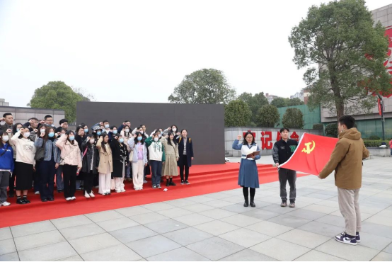 入党誓词是共产党人初心使命的集中体现,是共产党人的座右铭,牢记入党誓词,不断叩问初心、坚守使命,方能做到初心如磐、使命在肩。在雷望红老师的带领下,全体员工党员在雷锋塑像广场一起高举右手,面对鲜红的党旗,再次重温入党誓词,铿锵恢宏的誓词,强烈震撼着在场的每一位同学,一字一句,神圣而豪迈,铮铮誓言,体现了党员同学们对中国共产党的无限忠诚。