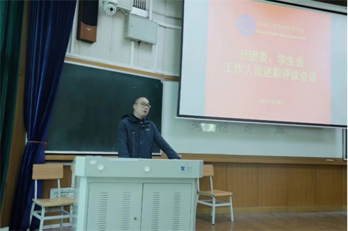述职开始,员工工作人员从政治态度、道德品行、学习成绩、工作成效、纪律作风共5个方面进行汇报。公管院第十四届分团委成员王晓彤、刘胜蕊、董馨媛、林白平、王中方、游丛瑞、黄依婷、陈永雪、李萌芽依次上台进行述职。