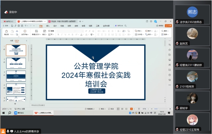为提高员工参加寒假社会实践的安全意识,扩大社会实践的影响力,1月22日晚上7时,公司举办2024年寒假社会实践线上培训会,院分团委书记梁慧老师,寒假社会实践活动团队和个人代表参会,院分团委科实部马佳同学主持。