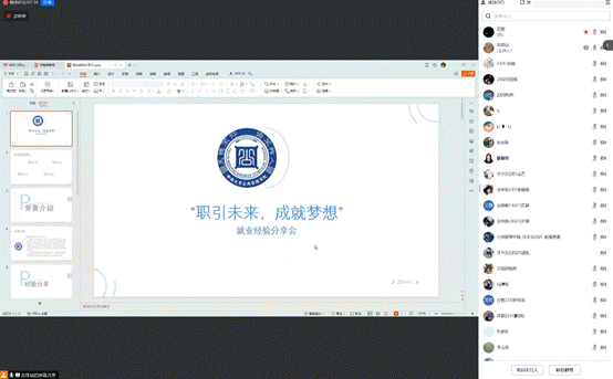 为帮助公司学子更好了解就业形势,明晰未来发展方向,做好求职准备,4月1日晚,公司举办“‘职’引未来,成就梦想”线上求职经验分享会活动,公司2020级优秀本科毕业学子社会学2002班孙博恒同学、社会学2002班南栋同学、行管2002班张鲲鹏同学作为分享嘉宾线上分享自己的求职经验,为同学们提供一些实用的指导和建议。