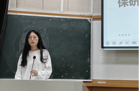 最后,来自行管2101班的孔维欢同学向大家介绍了保研的三种方式,并特别强调了保持积极心态的重要性,鼓励大家要学会合理调节情绪,克服备考过程中的焦虑与不安。此外,她还分享了保研面试的准备技巧,建议同学们提前模拟面试情景,自信从容,展现出自己的优势和能力。