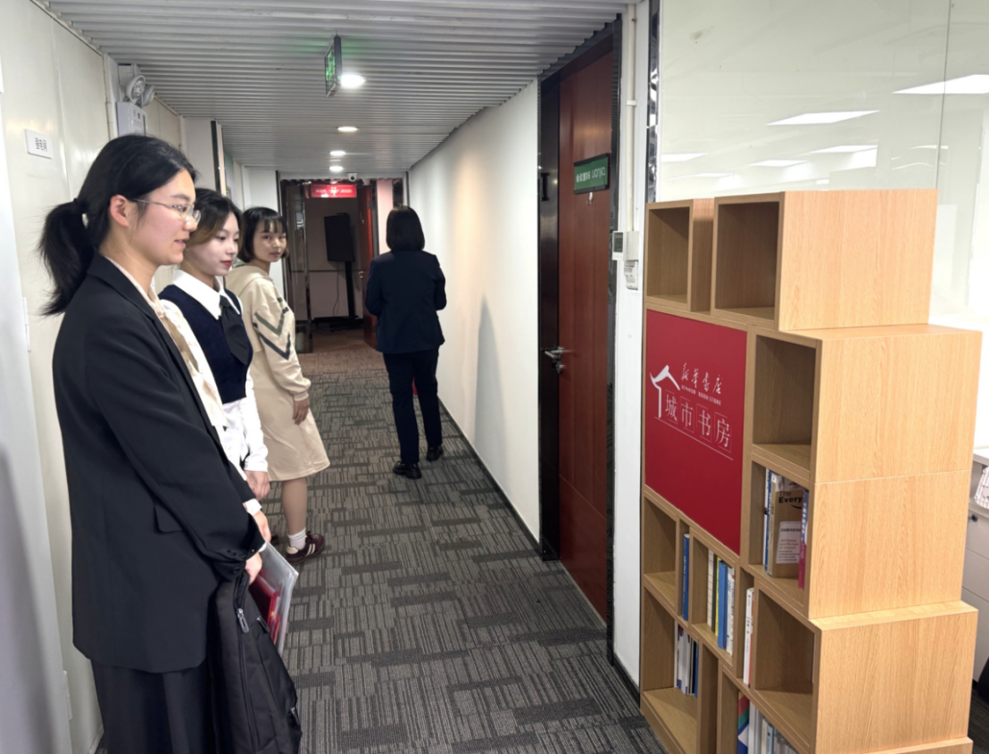 随后,上海链家汪维经理带领公管院师生参观上海链家总部人力资源中心。干净明亮的办公大厅、简约宽敞的面试场地、舒适温馨的茶水间等给同学们留下深刻印象。汪维经理介绍,这里每天要面试上百名应聘者,公司人才需求大,应聘竞争激烈。参观到“早安链家”直播间时,汪经理说,每周一早上9:30,链家都会进行早安直播,在崭新一周的开始,激励每一个链家人在岗位上勇往直前,同时也给他们送上温暖关怀。同学们对链家的家文化、员工关系、工作氛围和社会责任感留下深刻印象。