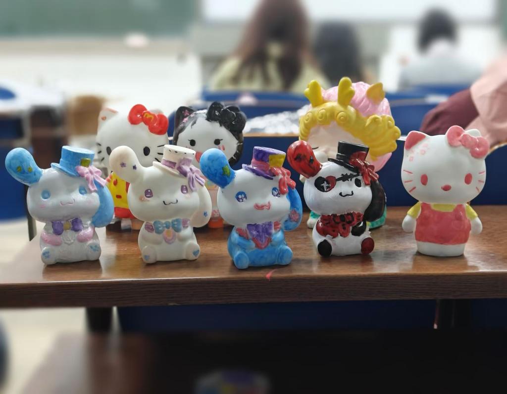 绘制石膏的过程中,同学们展现出了极高的热情和创造力,用手中的画笔和斑斓的色彩,为石膏娃娃赋予了新的生命。石膏娃娃不仅是同学们艺术创作的成果,更承载着他们丰富多彩的情绪,每一个都充满了个性与想象力。