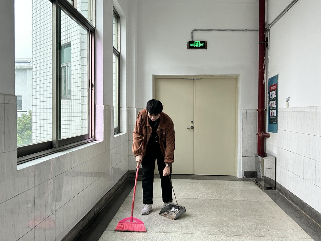班会结束后,王松阳带领大家一起清扫了世纪楼,在实践中感悟劳动精神,践行“一分耕耘,一分收获”。